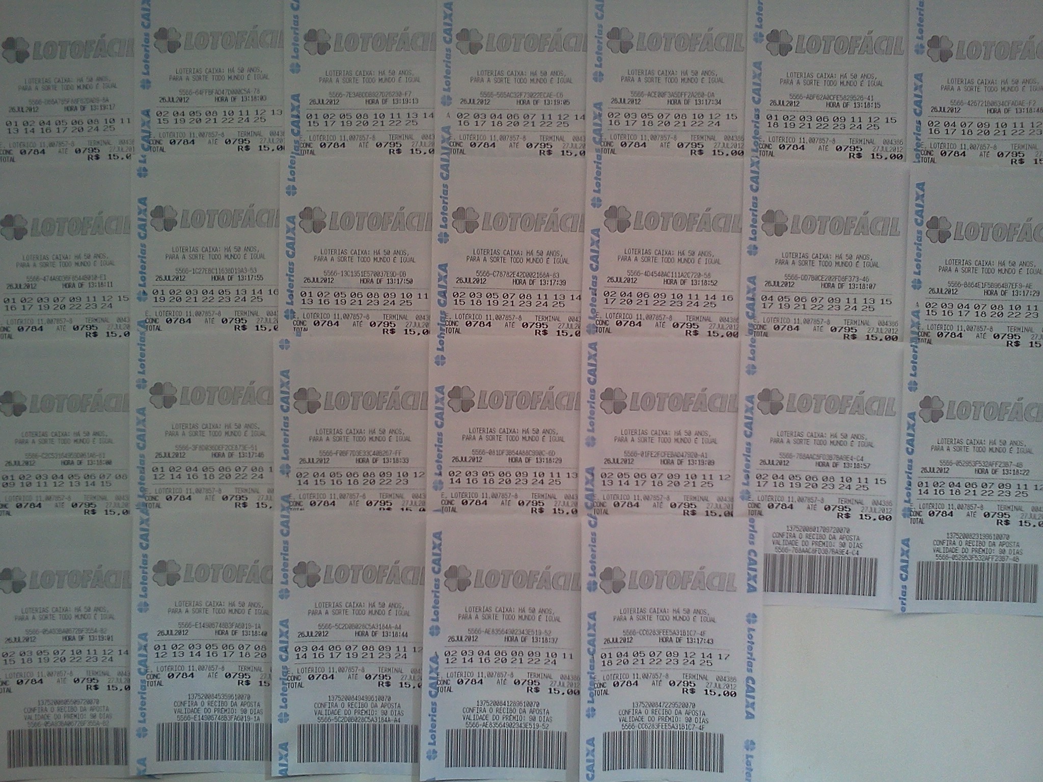 Neste bolão cada pessoa paga R$ 15,00 para participar. R$ 15,00 serão utilizados para fazer um jogo da lotofácil com 15 números (teimosinha 12 concursos) na lotérica. Não haverá caixinha neste bolão. Qualquer premiação será dividida em cotas de acordo com a quantidade de jogos. O autor de cada jogo tem direito a uma cota. Assim, a pessoa que faz mais de um jogo para o bolão terá a quantidade de cotas no prêmio igual a quantidade de jogos de sua autoria.