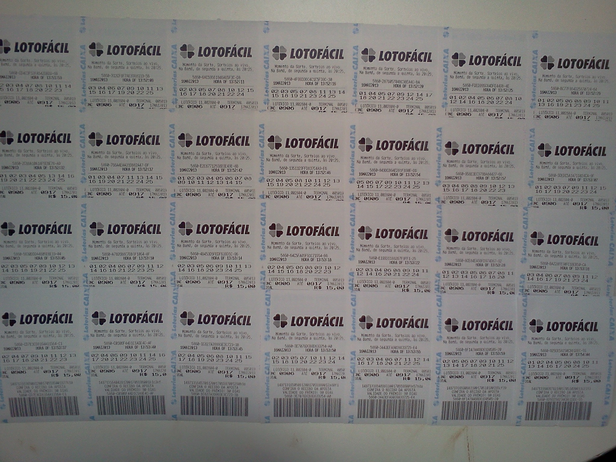 Neste bolão cada pessoa paga R$ 15,00 para participar. R$ 15,00 serão utilizados para fazer um jogo da lotofácil com 15 números (teimosinha 12 concursos) na lotérica. Não haverá caixinha neste bolão. Qualquer premiação será dividida em cotas de acordo com a quantidade de jogos. O autor de cada jogo tem direito a uma cota. Assim, a pessoa que faz mais de um jogo para o bolão terá a quantidade de cotas no prêmio igual a quantidade de jogos de sua autoria.