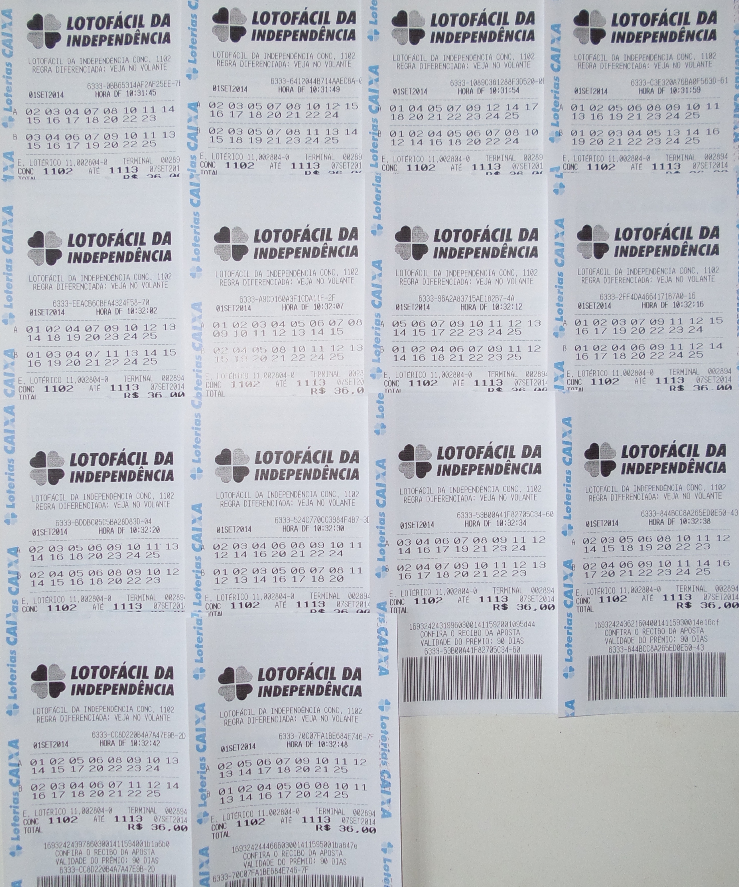 Neste bolão cada pessoa paga R$ 18,00 para participar. R$ 18,00 serão utilizados para fazer um jogo da lotofácil com 15 números (teimosinha 12 concursos) na lotérica. Não haverá caixinha neste bolão. Qualquer premiação será dividida em cotas de acordo com a quantidade de jogos. O autor de cada jogo tem direito a uma cota. Assim, a pessoa que faz mais de um jogo para o bolão terá a quantidade de cotas no prêmio igual a quantidade de jogos de sua autoria.