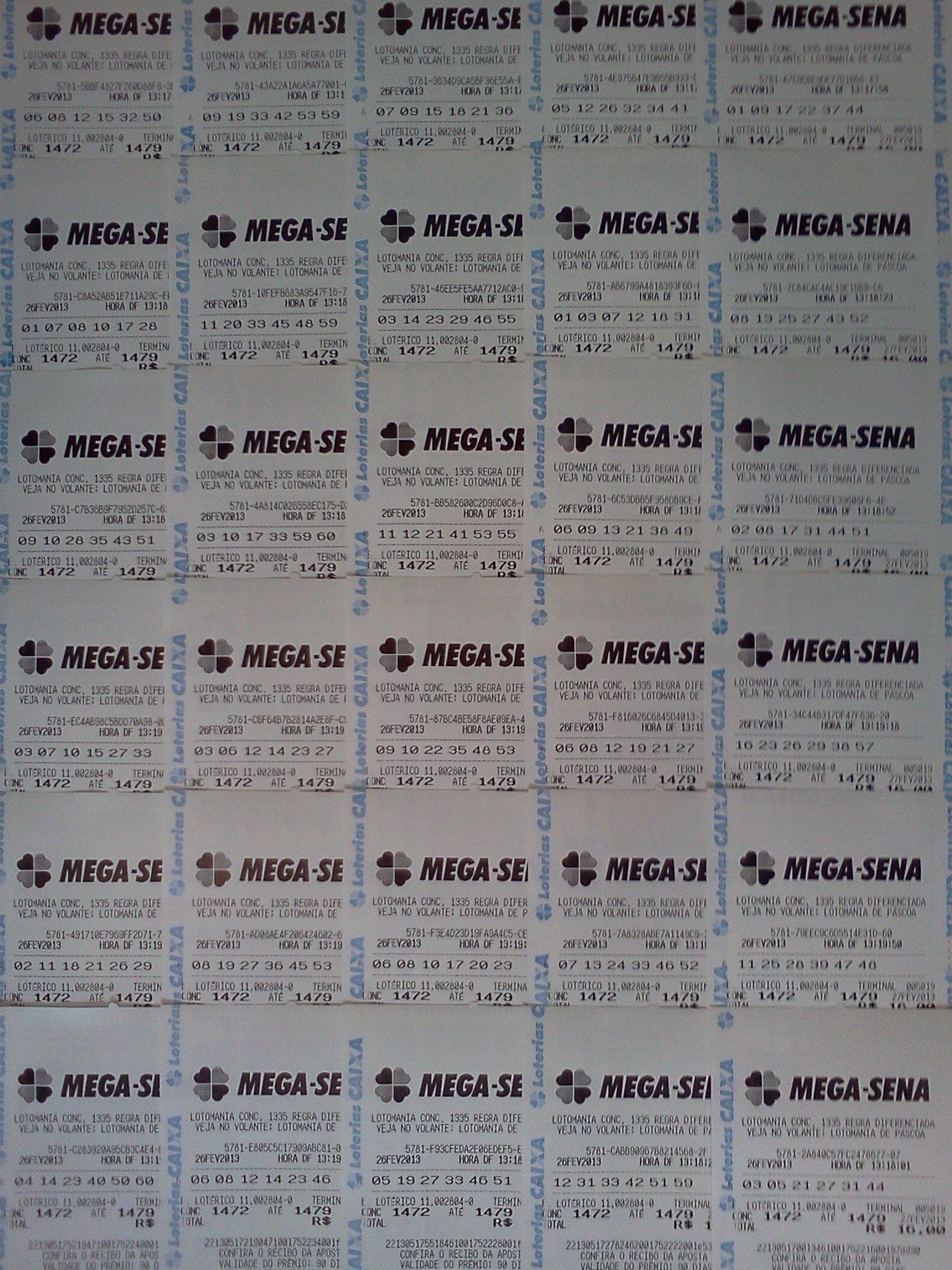 Neste bolão cada pessoa paga R$ 20,00 para participar. R$ 16,00 serão utilizados para fazer um jogo da mega-sena com 6 números (teimosinha 8 concursos) na lotérica. Os R$ 4,00 restantes são depositados em uma caixinha para premiar o autor do jogo que teve mais acertos no final do bolão. Esta informação pode ser acompanhada pelo link RESUMO. Qualquer premiação (quadra, quina ou sena) será dividida em cotas de acordo com a quantidade de jogos. O autor de cada jogo tem direito a uma cota. Assim, a pessoa que faz mais de um jogo para o bolão terá a quantidade de cotas no prêmio igual a quantidade de jogos de sua autoria.