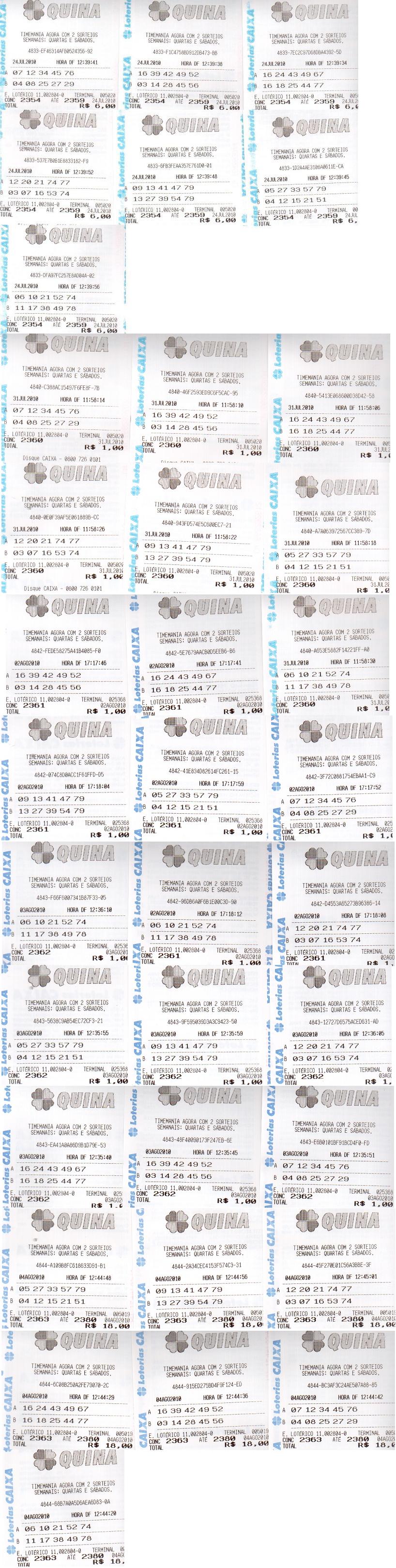 Este bolão foi do concurso 2354 as 2380, ou seja, 27 concursos a um custo de R$ 13,50. Para a caixinha deste bolão sobra R$ 1,50 de cada jogo.